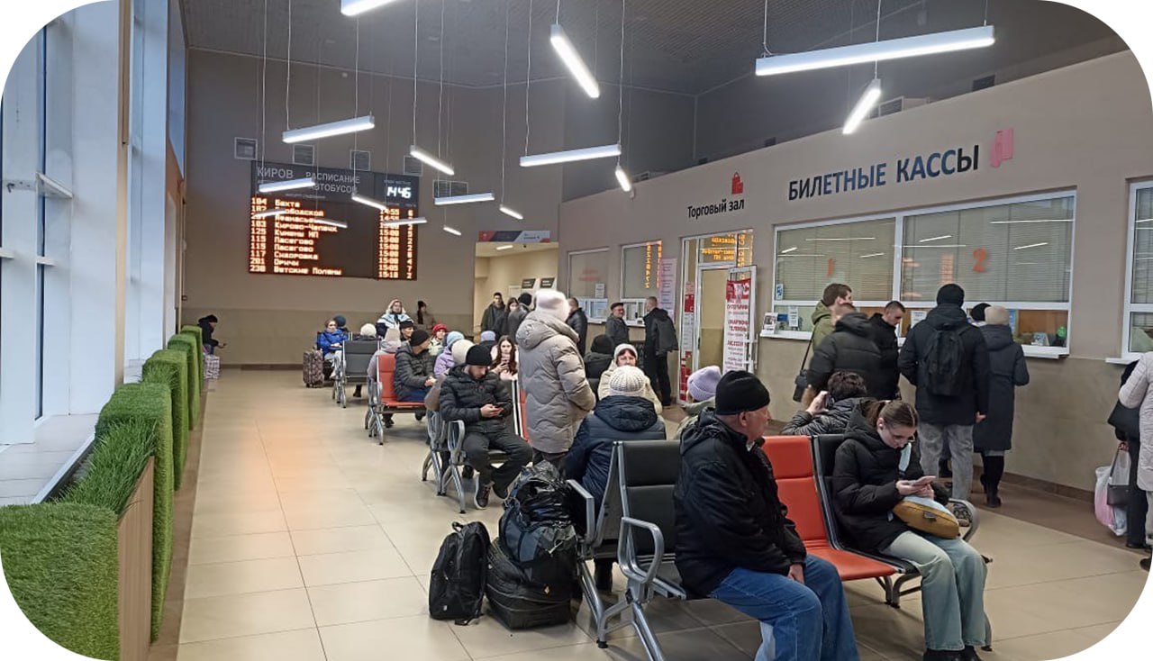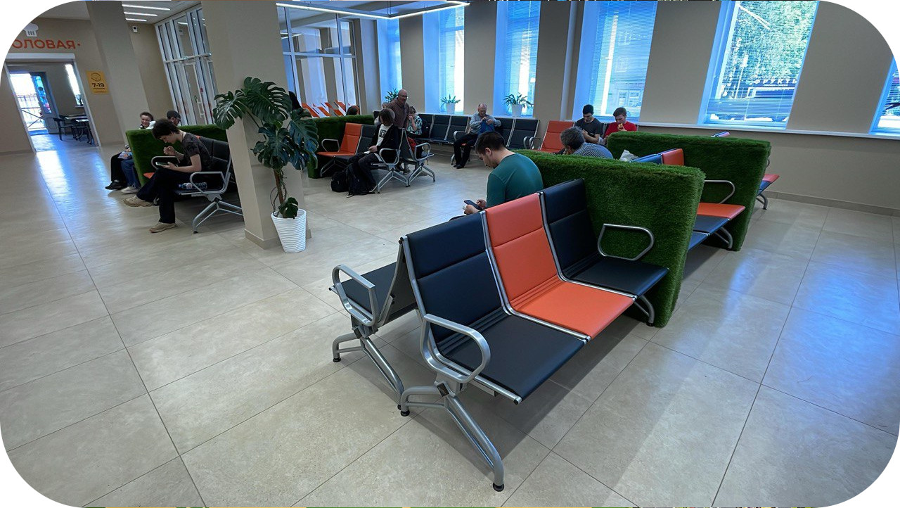 В зале ожидания автовокзала размещены комфортные места для отдыха пассажиров.
